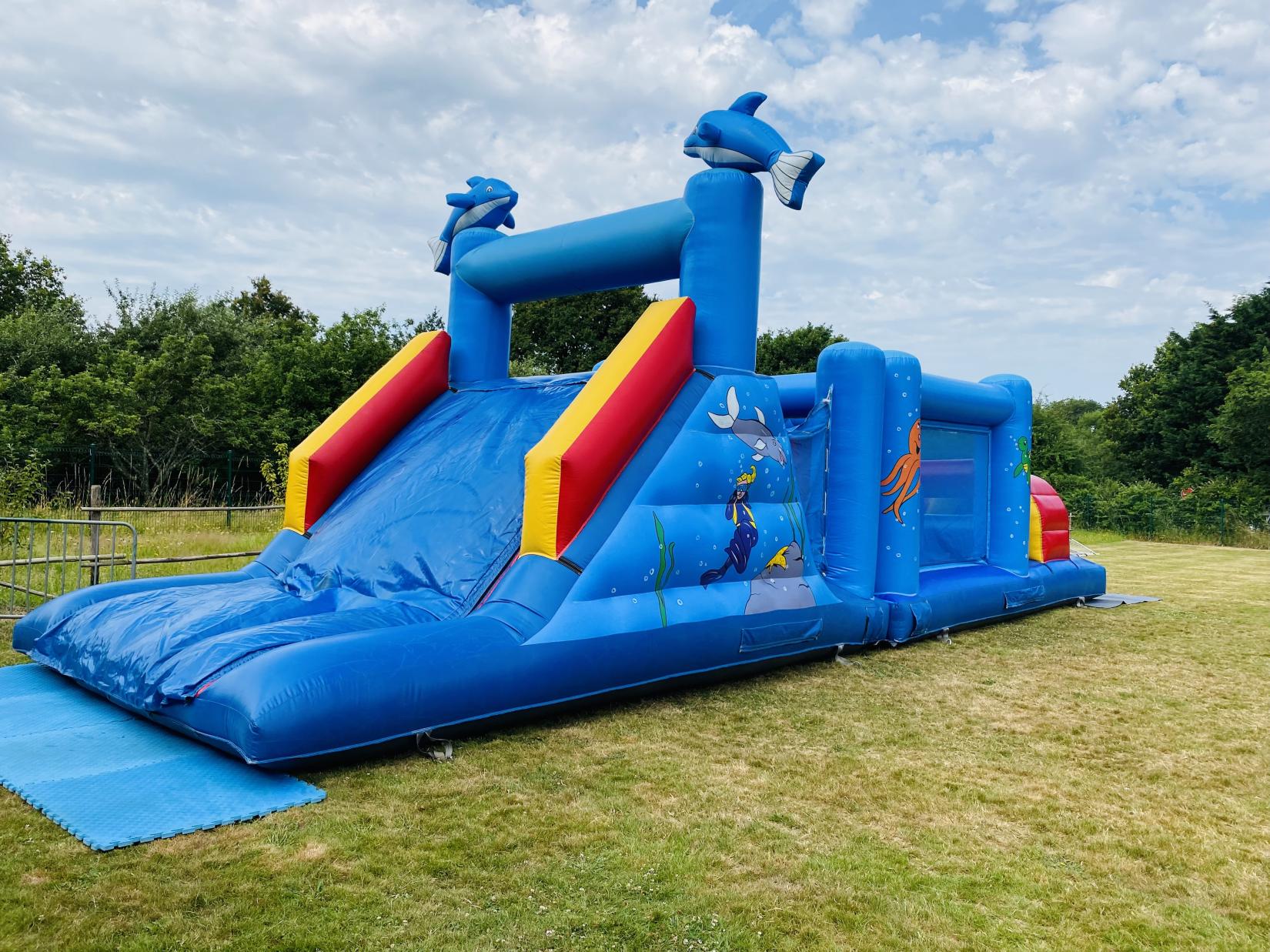 Avec ce grand parcours gonflable vous serez des vrais aventuriers : roulades, escalades, et glissades en passant par le toboggan au milieu des dauphins, baleines et tortues